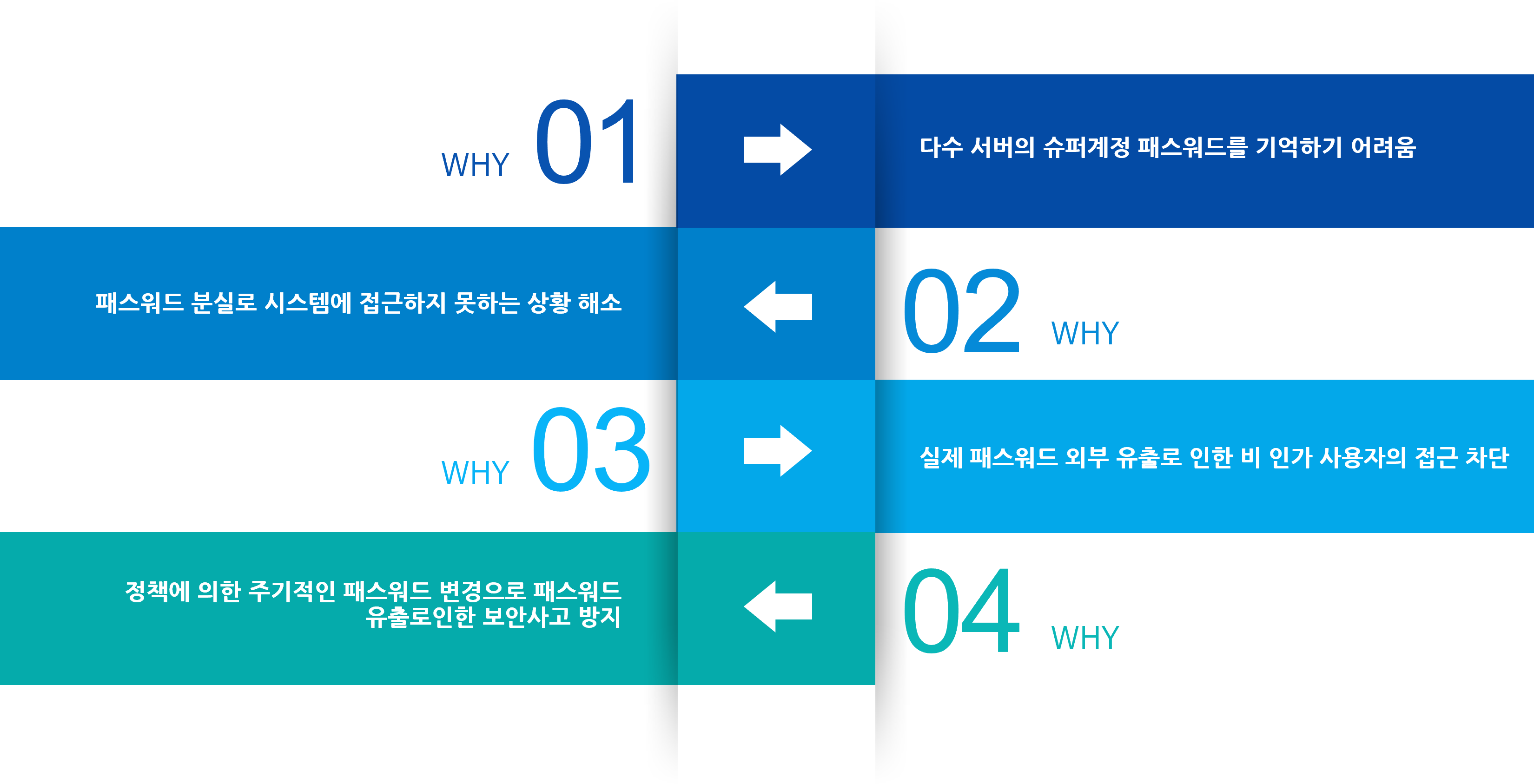 ÇöÇà °ü¸®/¿î¿µ »óÀÇ ¿©·¯ ¹®Á¦Á¡¿¡ ´ëÇÑ ÇØ°á°ú ÆÐ½º¿öµå À¯Ãâ·Î ÀÎÇÑ º¸¾È»ç°í ¹ß»ýÀÇ ¿øÃµÀûÀÎ Â÷´ÜÀ» À§ÇØ, ÆÐ½º¿öµå Á¤Ã¥À» ü°èÀûÀ¸·Î °ü¸® ¹× Àû¿ëÇÒ ¼ö ÀÖ´Â È¿°úÀûÀÎ ½Ã½ºÅÛÀÇ ±¸ÃàÀÌ ÇÊ¿äÇÕ´Ï´Ù.
